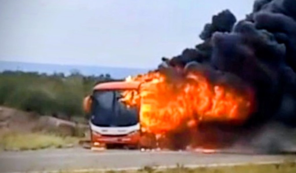 Un colectivo con docentes y alumnos se incendió en Ruta 40